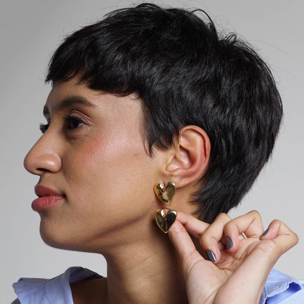 Garanta já o seu Brinco Coração Orgânico Dourado e adicione um toque de amor e estilo às suas produções!